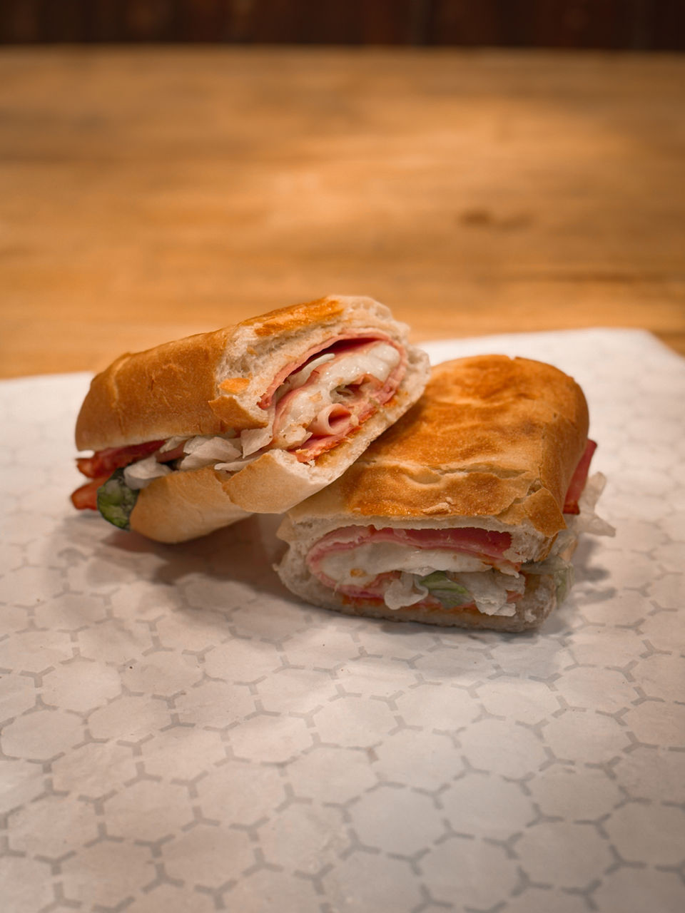 Ham, pepperoni, lettuce, tomato, onion, mozzarella, Italian dressing